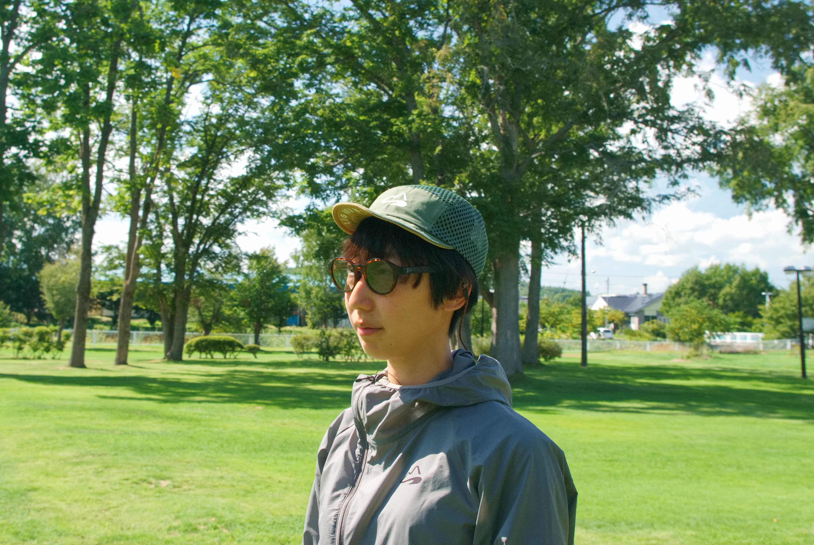 落ち着いたフォレストカラーに切り返したつばがマスタードカラーで存在感があります。