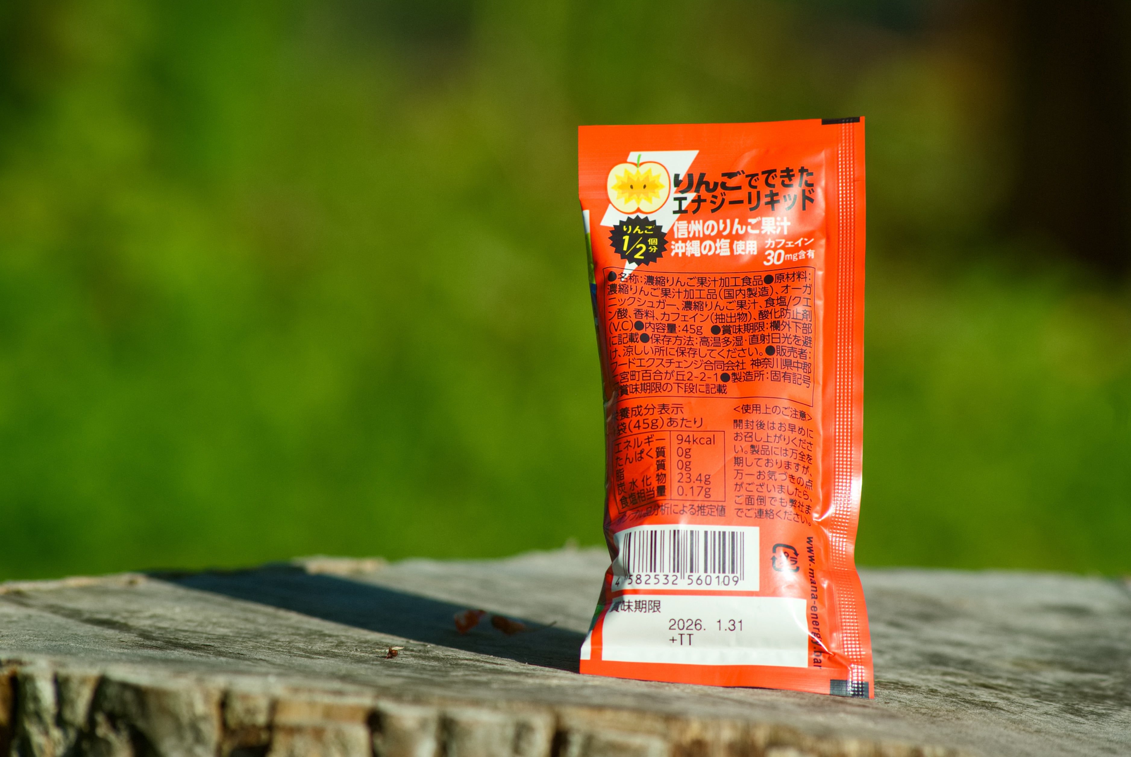 濃縮りんご果汁加工品(国内製造)、有機砂糖、濃縮りんご果汁(りんご(長野県産))、食塩(沖縄県産) / クエン酸、香料、カフェイン(抽出物)、酸化防止剤(ビタミンC)