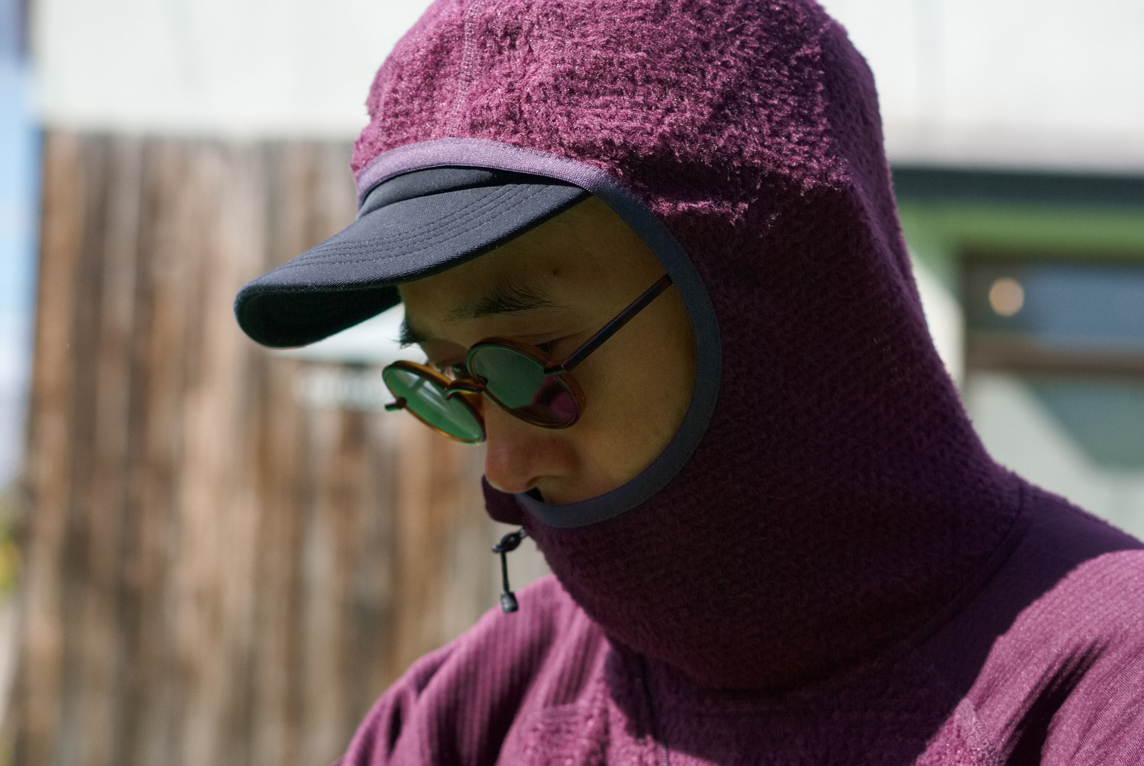 先にリリースされていたウインドシェル、オニオンフーディーとの互換性もバッチリで、あごに当たらないよう配置されたファスナーは同仕様、体温調節が容易となるダブルジッパー、時計が見られるように設けられたウォッチウィンドウは併用しても妨げにならないギミックです。