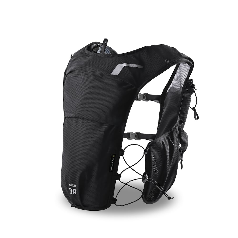 容量3リットルの最小容量で軽量な、ショートレースやウルトラマラソンに使いやすい「RUSH3R」が登場しました。