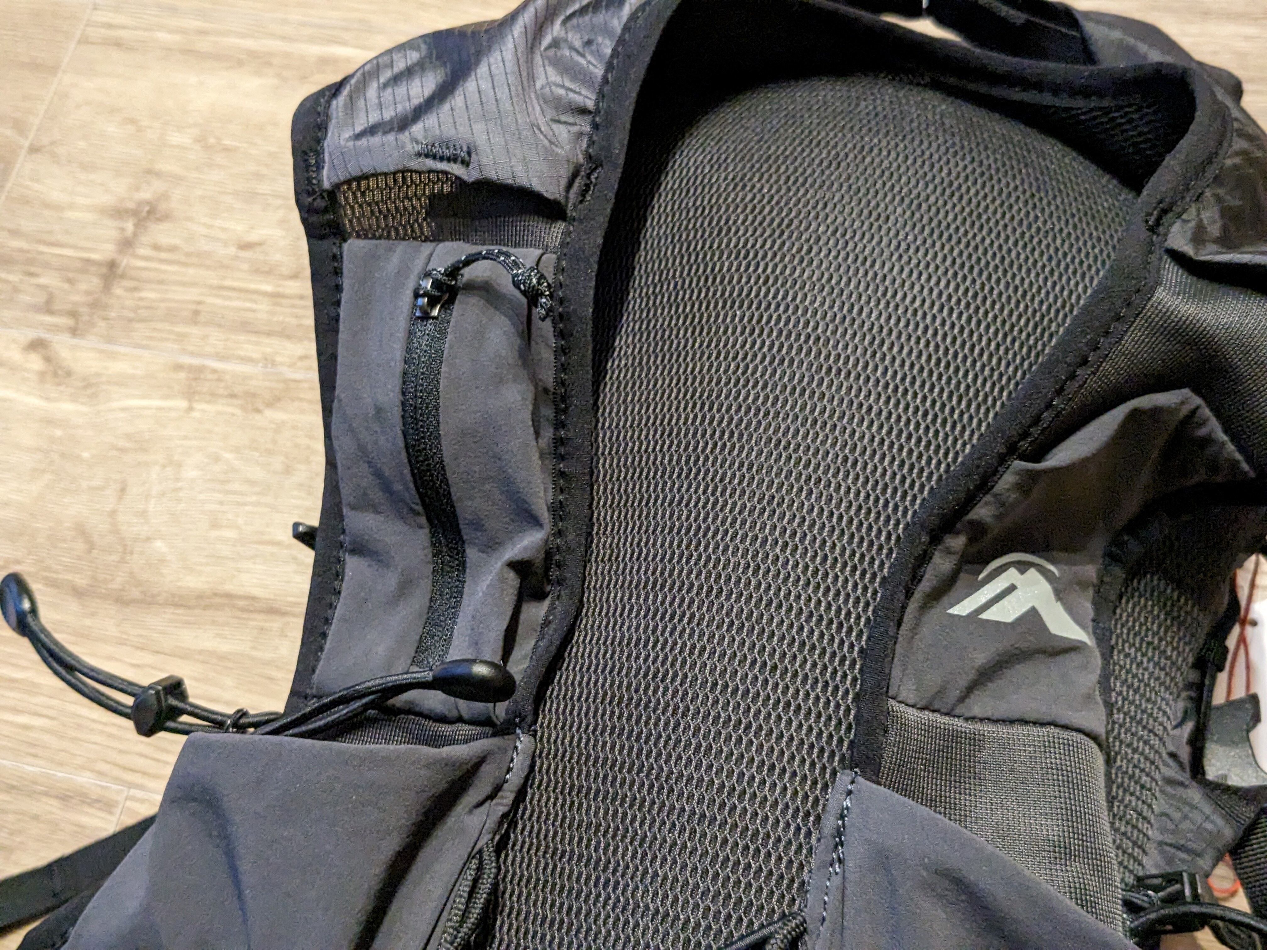 ソフトフラスクの収納に最適なハーネス部のフロントポケット