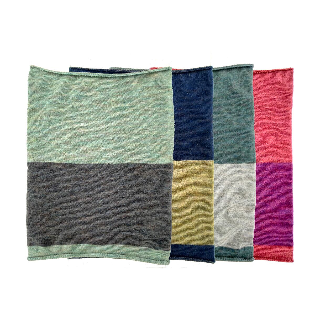腹巻といえばバカボンのパパのようなイメージが日本人にはどうしてもありますが、そうはならず快適さと暖かさを兼ね備えたメリノメランジのバイカラーで直接見せてもアクセントになります。