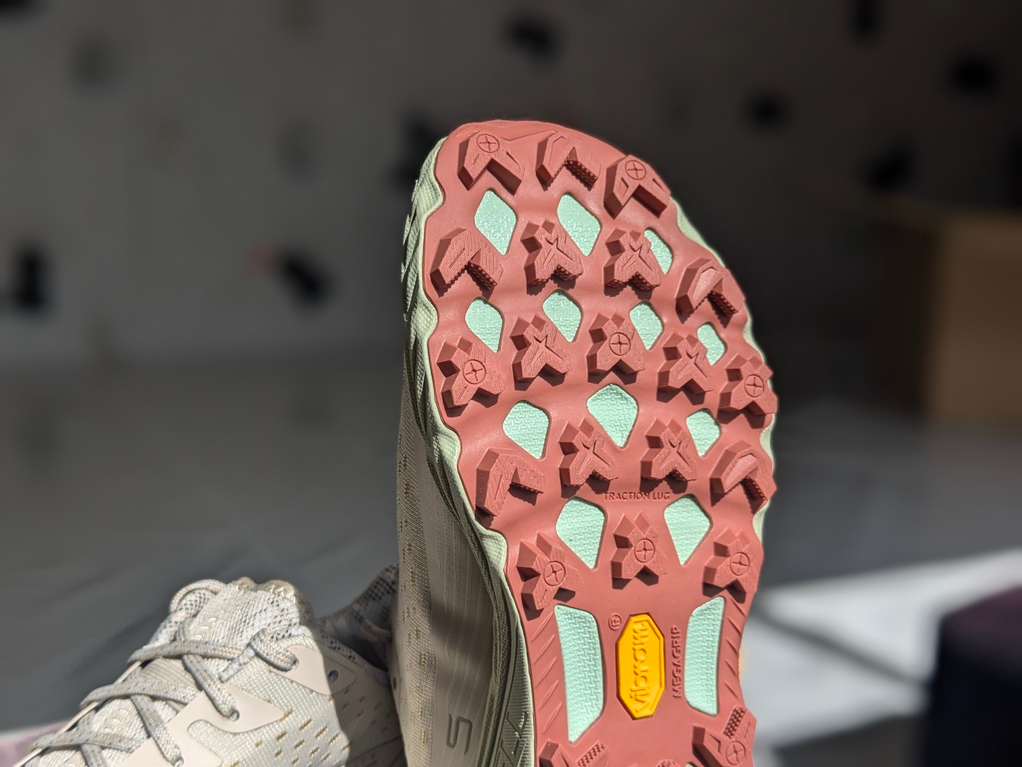 細かな突起のあるVibram(ヴィブラム)最新特許技術のラグ形状がより高いグリップ性を実現。表面積が増加することで安定性を高め、トラクション性能が向上。